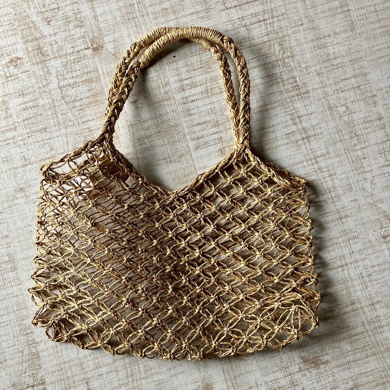 手編み藁メッシュトートバッグ  Mサイズ